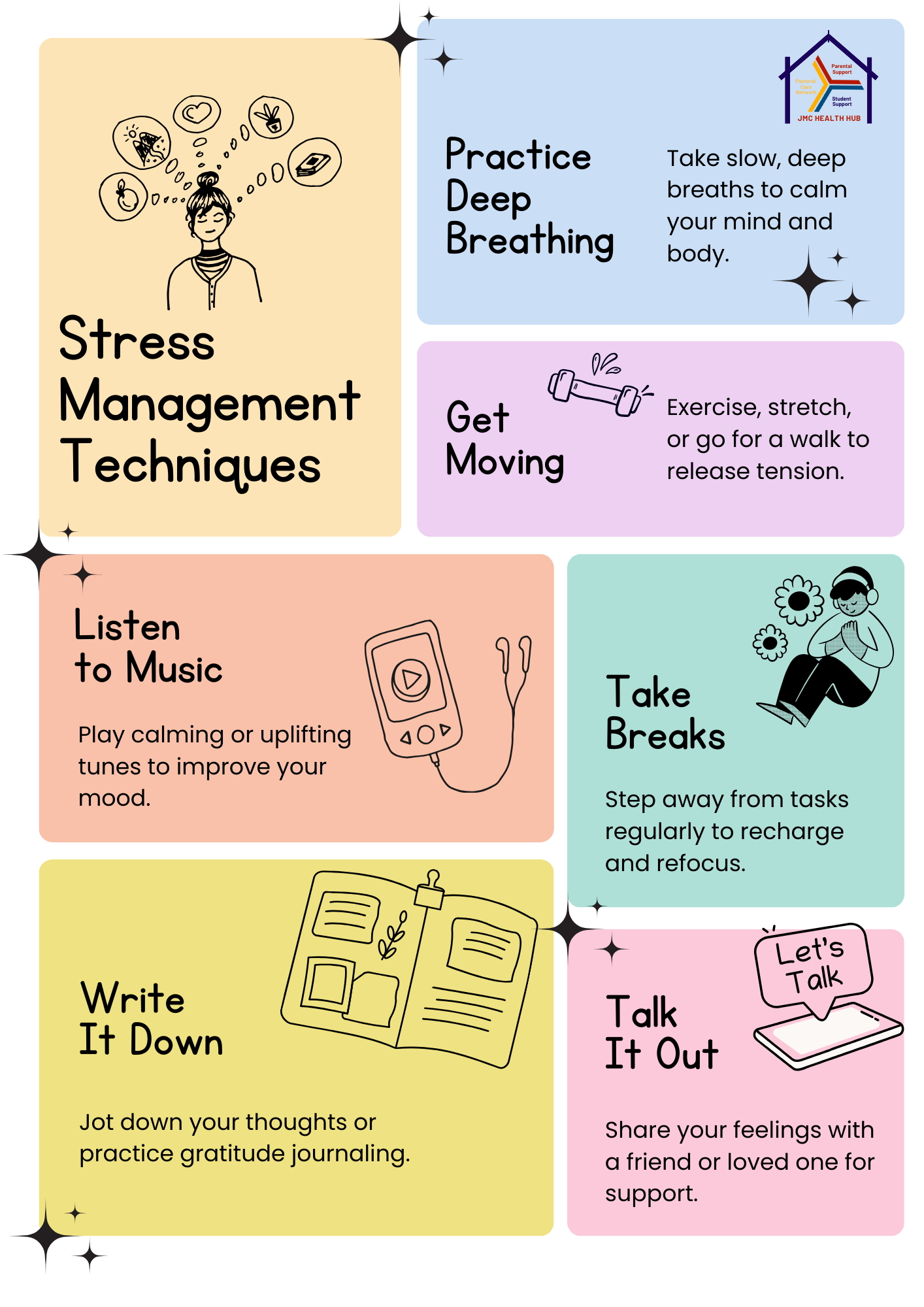 - Time Management: Utilise planners or to-do lists to organise tasks and reduce last-minute pressures
